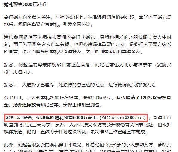 在这场婚礼上何超莲更换了多套高定。 婚礼的氛围装饰都很完美,据说花费大约是5000万。 在所有人都看来这是一场所有人都很满意的婚礼。